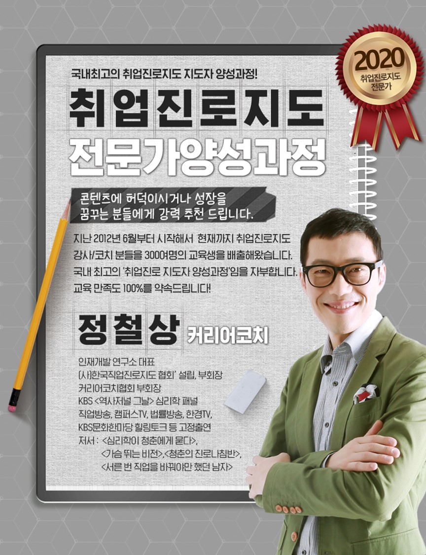 #취업 #진로 #취업교육 #진로교육 #취업진로지도 #취업진로지도사 #취업지도사 #진로지도사 #강사양성교육 #취업진로지도전문가 #취업강사 #진로강사 #필수교육 #동기부여강사 #취업진로전문가 #진로고민 #취업고민 #인생고민 #젊은이들의무릎팍도사 #진로상담 #진로코칭 #커리어코칭 #상담 #특강 #강연 #서른번직업을바꿔야만했던남자 #인생수업 #정교수의인생수업 #진로코치 #커리어코치 #라이프코치 #정철상