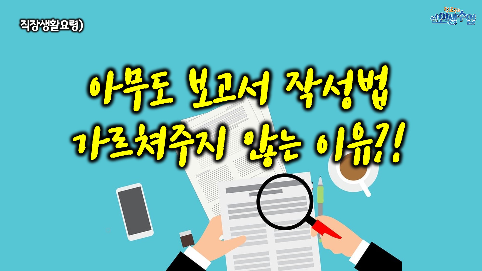 #보고서 #보고서쓰기 #보고서작성법 #보고서쓰는법 #글쓰기 #문서작성법 #문서작성하는법 #글쓰는법 #매력적인보고서 #예비직장인 #직장생활요령 #직장예절교육 #성공하는직장생활 #청년특강 #취업특강 #직장인특강 #신입사원교육 #커리어관리 #취업상담 #인생상담 #커리어코칭 #추천강사 #인생수업 #정교수의인생수업 #커리어코치 #정철상