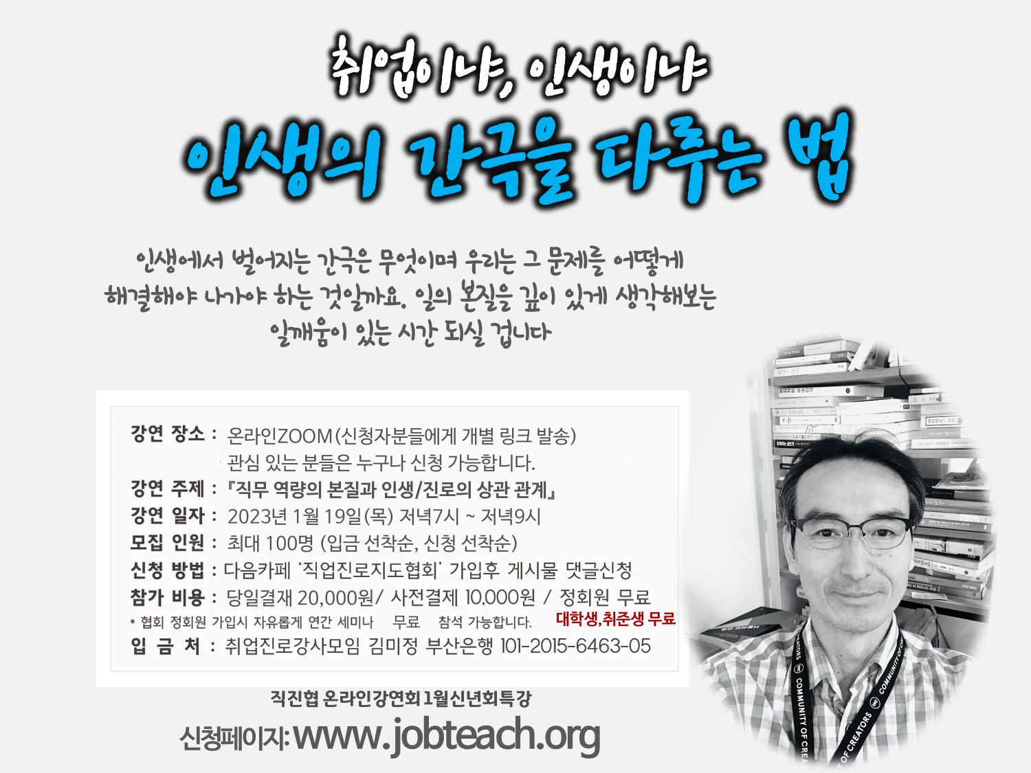 신청 방법 : https://cafe.daum.net/jobteach/Sk9N/208 에 댓글로 신청해주시길 바랍니다. (순번, 성함, e메일, 협회정회원 여부, 입금여부)