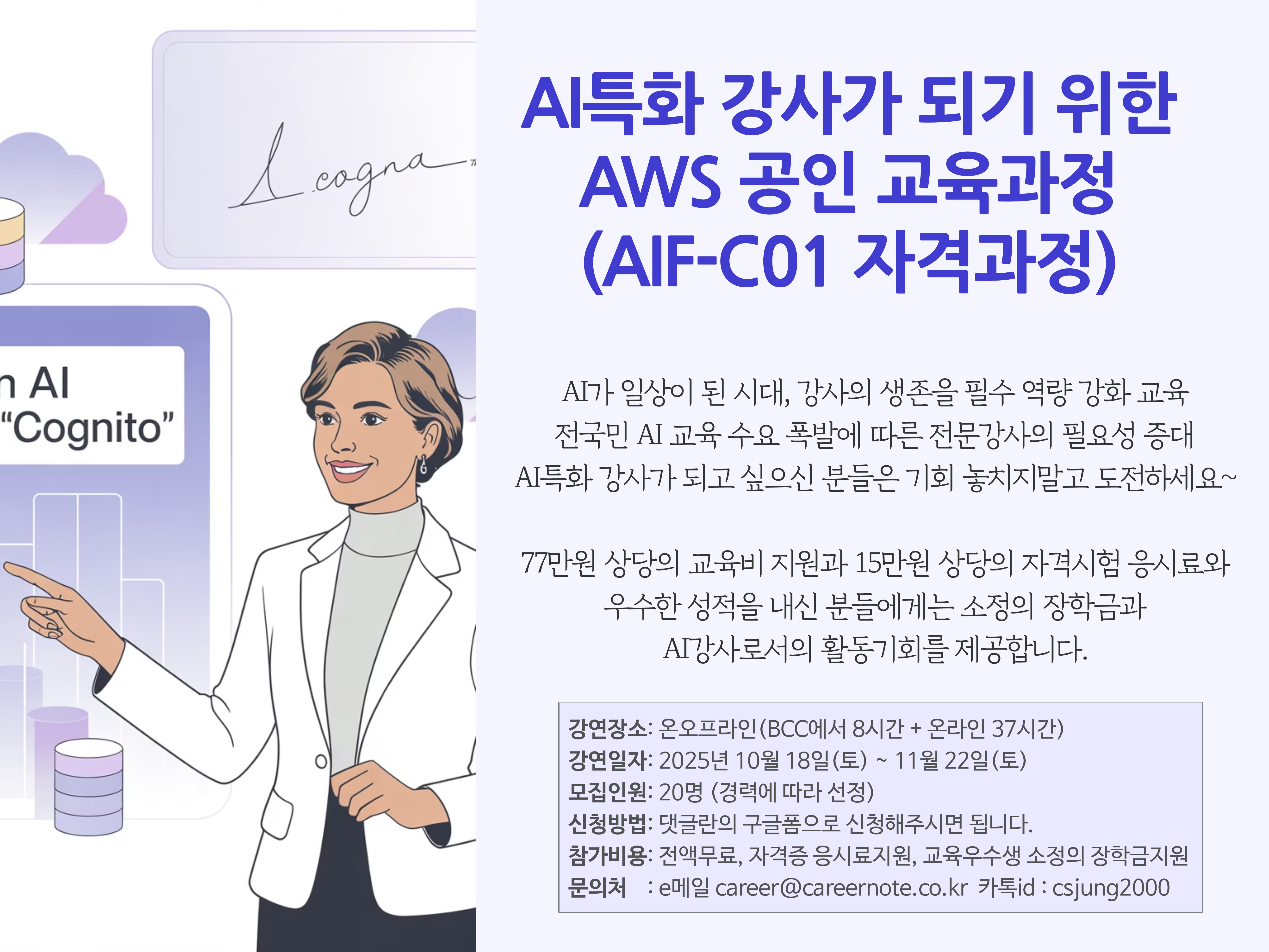 3. AWS 공인 AI 강사 양성과정(AIF-C01) 교육생 모집(무료+자격증 응시료 지원)