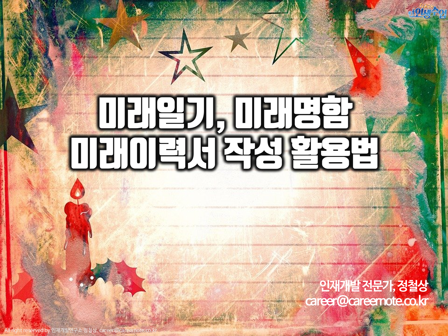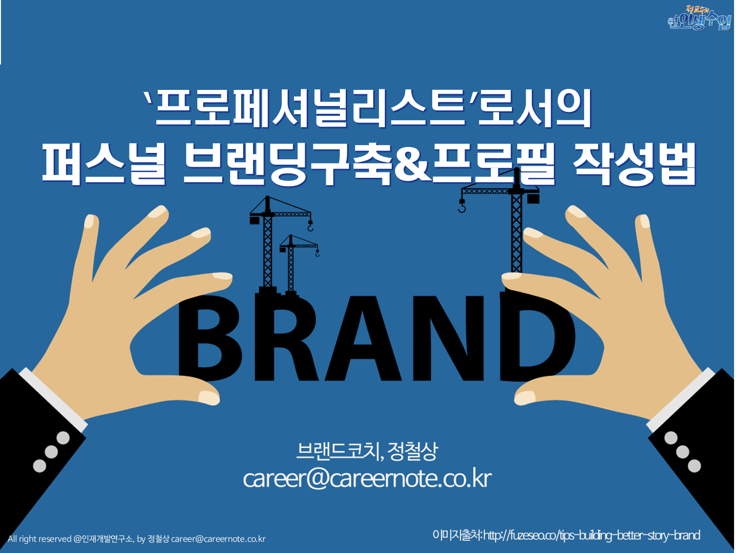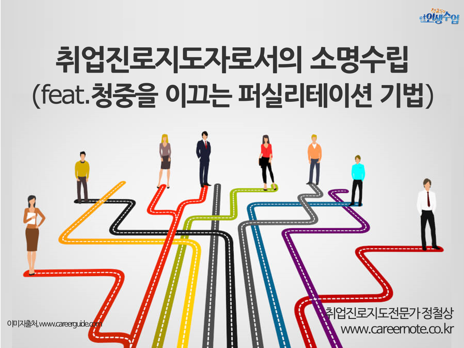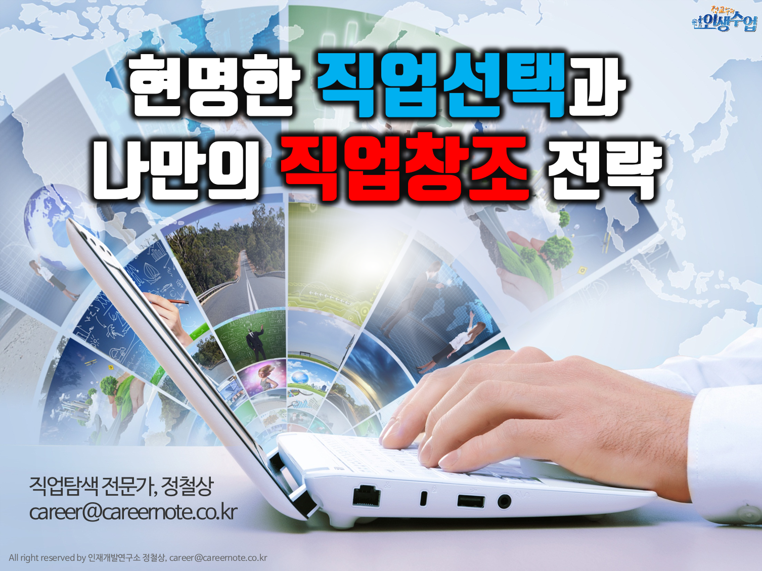 국가적으로나 개인적으로나 삶의 질을 결정하는 일자리 문제는 무엇보다 중요하다고 볼 수 있습니다. 그러나 정작 자신의 진로와 커리어 관리에는 무심한 경우가 많습니다. 많은 사람들이 왜 이토록 진로문제를 등한시 하는 것일까요? 그것은 진로를 청소년이나 청년문제로 인식하는 문제로 발행하고, 또 하나는 진로문제가단편적으로 일어나는 요인이 아니라 종합적인 처방이 필요하기 때문입니다. 그래서 사람들은 진로의 중요함에 대해 인식은 하지만 준비한다고 해봐야 대개 외국어나 자격증 공부에 매달리는 경우가 많은데요. 대개 헛다리짚으며 시간과 열정을 소모하는 경우도 많습니다-_-;;;