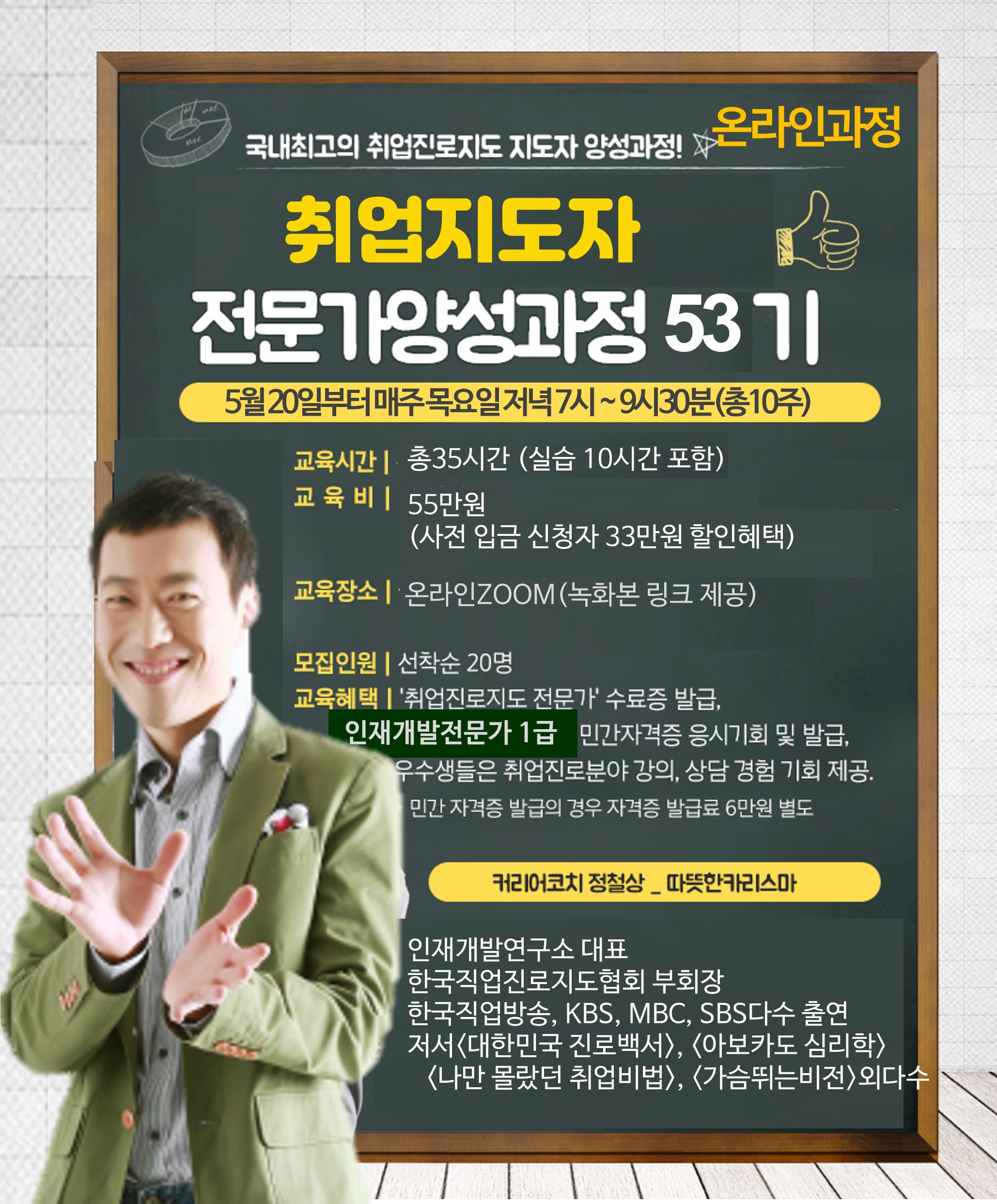 #취업지도자 #진로지도자 #취업교육 #진로교육 #취업진로지도 #강사양성교육 #취업진로지도전문가 #취업강사 #진로강사 #필수교육 #동기부여강사 #취업진로전문가 #취업전문가 #진로고민 #취업고민 #인생고민 #진로상담가 #진로코치 #커리어컨설턴트 #직업상담 #취업특강 #진로성숙도 #대한민국진로수업 #인생수업 #정교수의인생수업 #커리어코치 #정철상